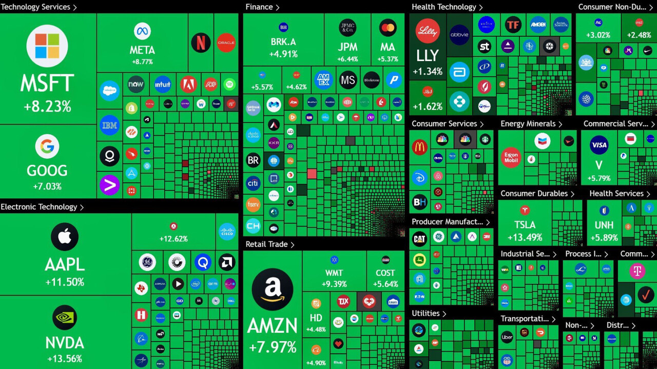 Trump’ın açıklamalarının akabinde ABD borsalarında keskin bir yükseliş yaşandı. Nasdaq, yüzde 10’un üzerinde artış göstererek 13 Ekim 2008’den bu yana en güçlü tek günlük performansını sergiledi. Dow Jones endeksi de 2.600 puanı aşarak yüzde 6,3 kıymet kazandı.