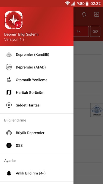 - Kandilli ve AFAD bilgilerini tıpkı anda görüntüleme