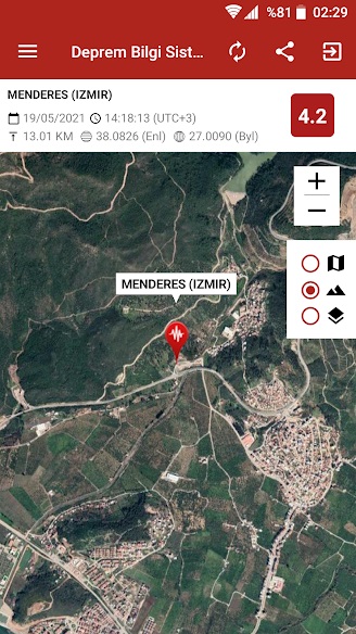 - Haritada zelzelenin merkez üssünü ayrıntılı inceleme