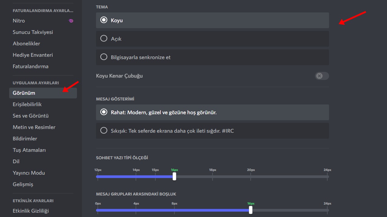 Discord’un görünümünü değiştirmenize müsaade veren bir dizi seçenek ve araç var. Platform, kullanıcılara açık ve koyu temalar ortasında geçiş yapma fırsatı sunmakta.