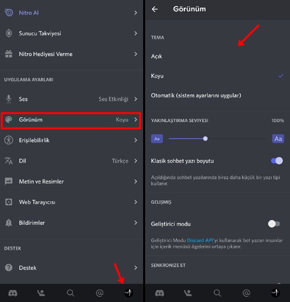 - Adım 4: Görünüm menüsünde “Açık” yahut “Koyu” temasını tercih edebilirsiniz.