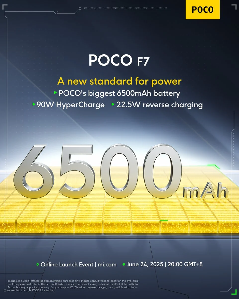 Bu ayın başlarında Poco India, Poco F7’nin 7.550 mAh kapasiteli silikon-karbon (Si/C) pille geleceğini açıkladı. Lakin Poco Global’in yaptığı paylaşıma nazaran global modelde 6.500 mAh’lik daha küçük bir batarya bulunacak.