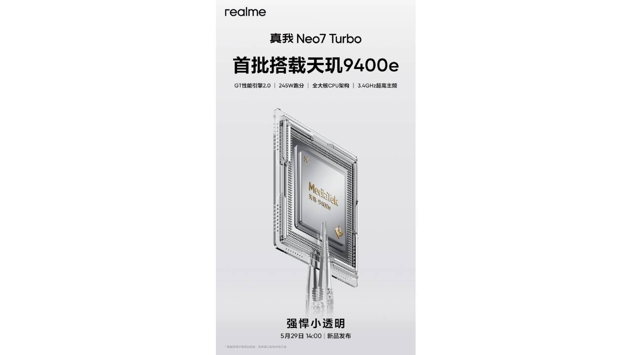 realme, performansa odaklanan yeni akıllı telefon modeli Neo 7 Turbo’nun 29 Mayıs’ta tanıtılacağını resmen duyurdu. Şirketin Çin Başkanı Xu Qi tarafından paylaşılan resmi posterler, modelin hem işlemcisi hem de tasarımı hakkında değerli ipuçları veriyor. Neo 7 Turbo, MediaTek’in amiral gemisi işlemcisi Dimensity 9400e ile donatılan birinci telefonlardan biri olacak.