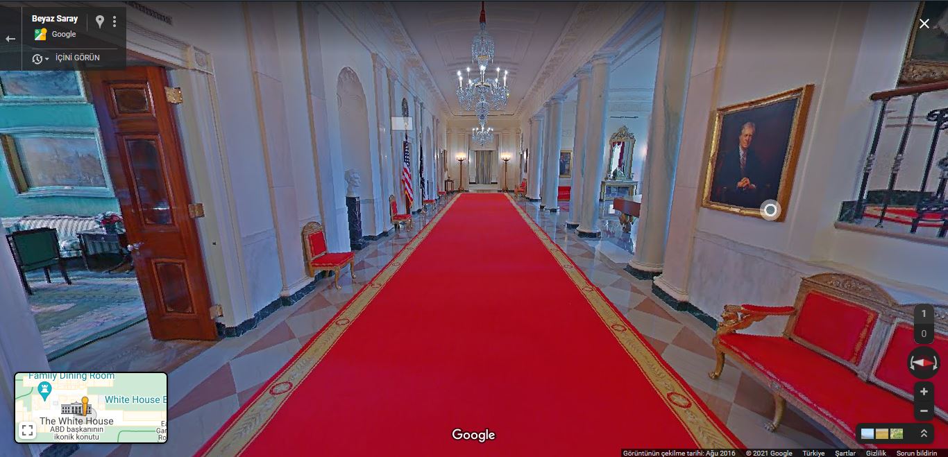 Google Haritalar ile halka açık odalarda 360 derece Beyaz Saray çeşidi atma imkanınız var.