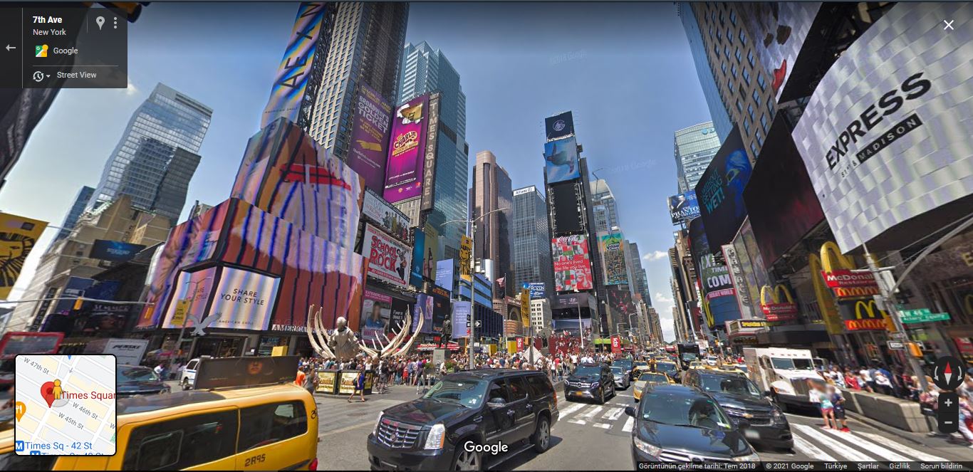 Times Meydanı, Broadway ve Seventh Avenue kesişiminde yer alan epey ünlü bir kavşaktır. Bölge, her yıl kestirimi 50 milyon ziyaretçi çeken dünyanın en çok ziyaret edilen turistik yerlerinden biridir. Çok sayıda reklam panosu ve reklamla ışıl ışıl aydınlatılan bu yer, çok sayıda dizi ve sinemalara konu olmuştur. Google Haritalar sayesinde kolaylıkla ziyaret edebileceğiniz Times Meydanı sizi bekliyor.