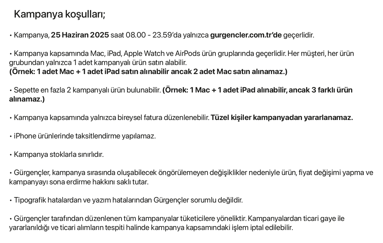 Apple’ın Türkiye’deki Premium Partner’i Gürgençler, yenilenen web sitesi gurgencler.com.tr’nin açılış lansmanına özel büyük bir kampanya başlatıyor. 25 Haziran Çarşamba günü sabah saat 08:00’da başlayacak kampanya, birebir gün gece 23:59’a kadar geçerli olacak. Kampanya kapsamında Apple eserlerinde geçerli 10.000 TL’ye varan indirimler sunulacak. Üstelik MacBook Air alışverişlerinde vade farksız 9 taksit avantajıyla!