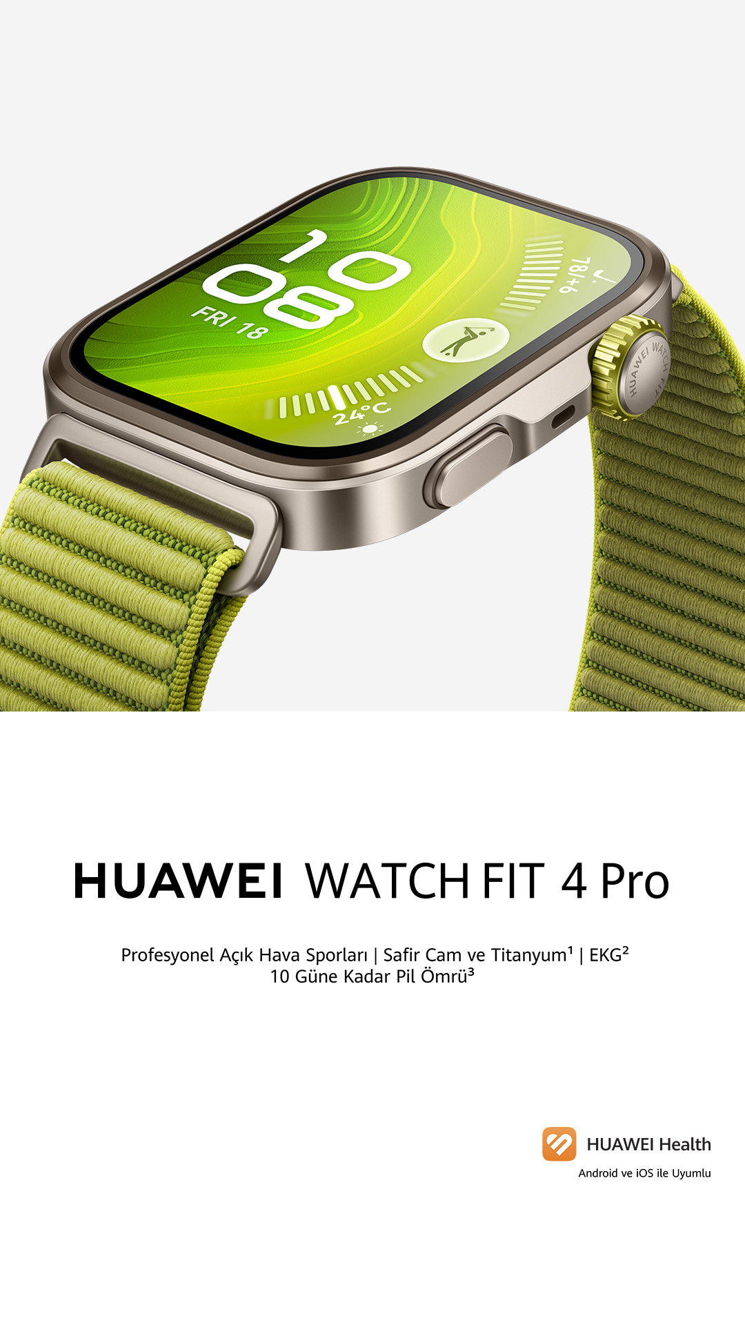 Huawei Watch Fit 4 serisi ise 9.3 mm kalınlığındaki ince yapısıyla tanıtıldı. Safir cam ekran ve titanyum alaşımlı çerçeveye sahip aygıt, açık hava ve su altı sporları için geliştirilmiş özel sensör sistemleriyle dikkat çekiyor. 40 metreye kadar dalış dayanağı sunan aygıt, golf, patika koşusu üzere spor modlarını destekliyor. Gelişmiş hava basıncı sensörü sayesinde irtifa değişimleri ve hava şartları da hassas biçimde takip edilebiliyor.