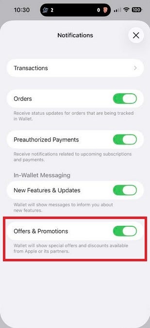 Bu yansıların akabinde fark edilen yeni ayar sayesinde iOS 26 Developer Beta kullanıcıları, Apple Wallet’taki “Offers & Promotions” yani “Teklifler ve Promosyonlar” ayarını kapatabiliyor. Bunun için Wallet uygulamasında sağ üstteki üç nokta simgesine dokunulup “Notifications” kısmına girilerek, buradaki ilgili anahtarın devre dışı bırakılması kâfi oluyor.