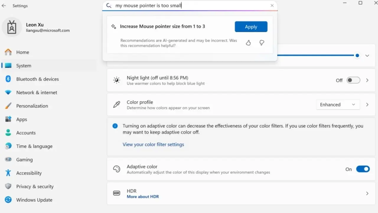 Mu, direkt işletim sistemiyle birlikte çalışıyor ve bilhassa doğal lisanda arama özelliğiyle öne çıkıyor. Windows Insider programının Dev Kanalı’nda test edilen bu yeni model, Ayarlar uygulamasındaki “akıllı ajan” özelliğini çalıştırıyor.