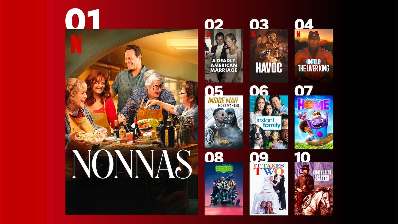 Popüler yayın platformu tarafından açıklanan ve izleyiciler tarafından da çok sevilerek izlenen sinemalar listesinde bu hafta da genel olarak yeni ve tanınan isimler bulunuyor. Küresel olarak en çok izlenen sinemaların birinci sırasına baktığımızda Nonnas isimli üretimin 38 milyon saat izlenmeyle birinci sırada olduğunu görebiliyoruz.