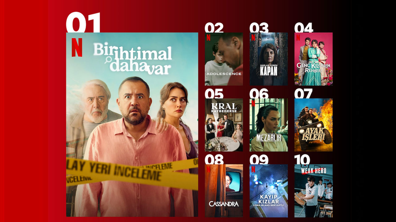 Netflix tarafından açıklanan ve izleyiciler tarafından da çok sevilerek izlenen diziler ve sinemalar listesinde bu hafta da tanınan isimler bulunuyor. Diziler tarafında birinci sıraya baktığımızda ise üçüncü haftasında da listenin başında yer alan Bir İhtimal Daha Var isimli üretim bulunuyor. İkinci sırada ise dört haftadır listede bulunan Adolescence yer alıyor. Çabucak gerisinden ikinci haftasında Kapan isimli imal bulunurken, dördüncü sırada ise Genç Kızların Rehberi bulunuyor.