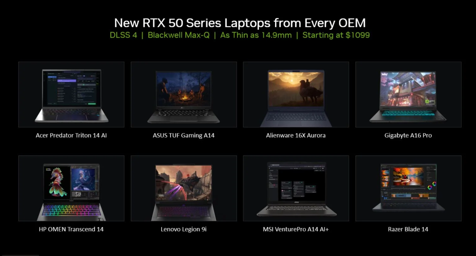 Laptop GPU’su olarak RTX 5060 hakkında da birtakım bilgiler paylaşıldı. NVIDIA piyasadaki tüm bilgisayar üreticilerinin RTX 5060 donanımlı dizüstü bilgisayarlar satacağını belirtti. Bu sistemlerin tam detayları şimdi bilinmese de RTX 5060’ın 14,9 mm kadar ince oyun dizüstü bilgisayarlarında yer alacağı açıklandı. Oyun dizüstü bilgisayarlarının başlangıç fiyatının en az 1099 dolar olması bekleniyor.