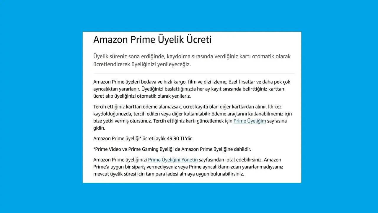Amazon Türkiye, Prime abonelik fiyatına artırım yaptı. Şirketin uzun müddettir sabit tuttuğu abonelik fiyatı, 22 Nisan 2025 prestijiyle güncellendi. Yeni fiyatla birlikte Prime üyeliği artık aylık 49,90 TL’den sunuluyor.