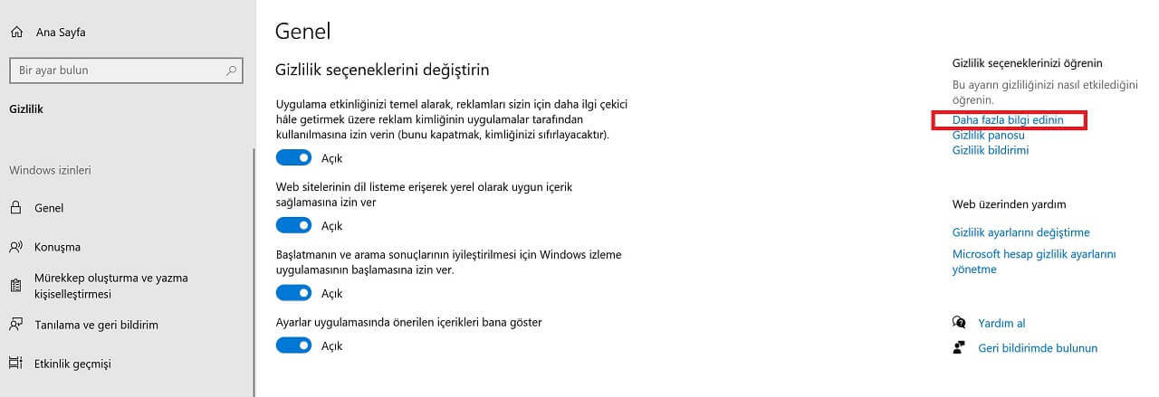 Bu ekrandan zımnilik ayarlarınızı kendi kullanımınıza nazaran ayarlayıp “daha fazla bilgi edin” seçeneğine tıklayarak ayrıntılı bir halde okuyabilirsiniz. Ve tekrar bu ekranda yer alan devam seçeneğine tıklayın.
