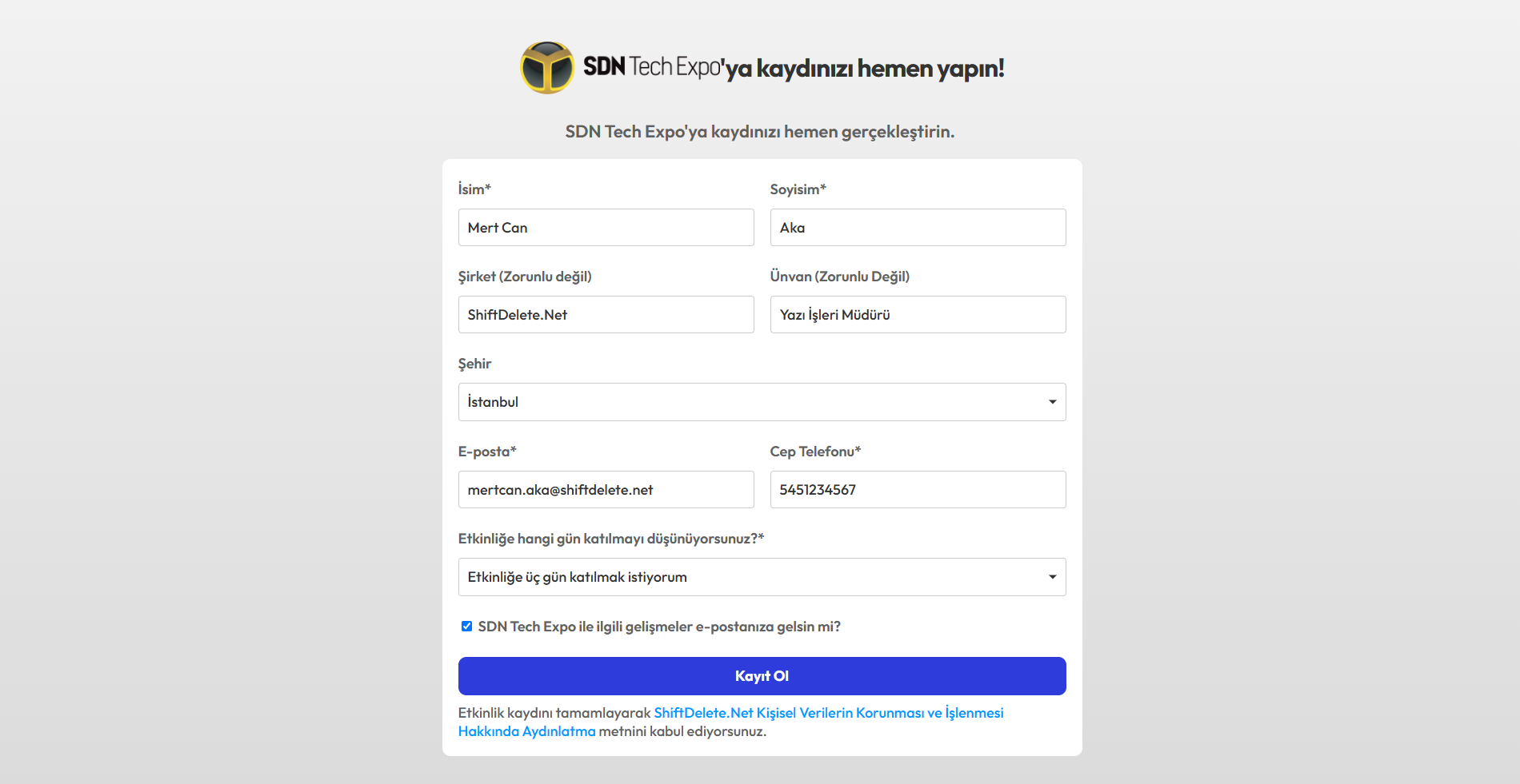 1- Burayı tıklayarak SDN Tech Expo sitesinde kayıt kısmına girin